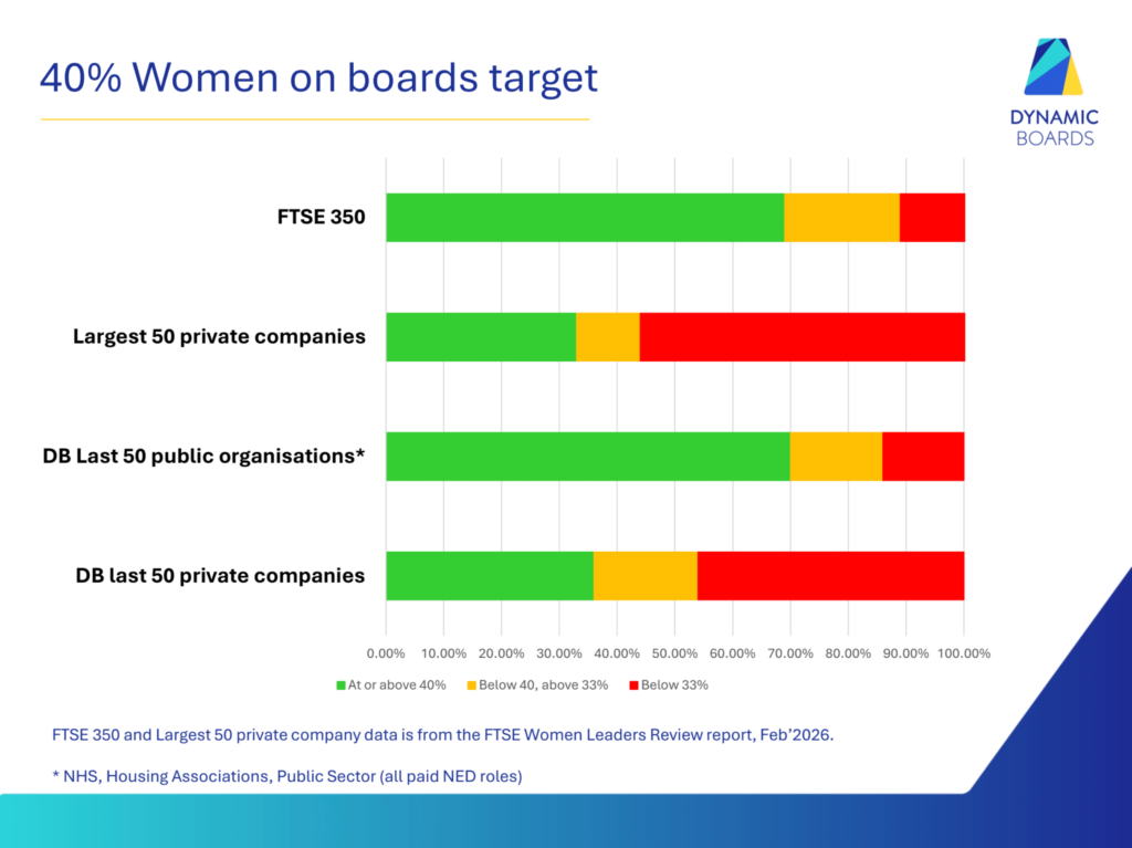 How does boardroom diversity look across UK SMEs, public sector boards, or other organisations beyond the FTSE 350? And what’s the state of gender diversity on boards in the wider UK?