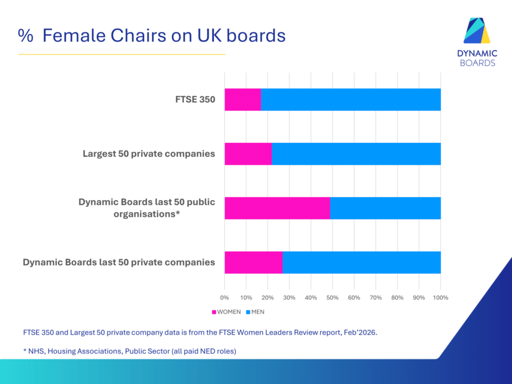 • Dynamic Boards last 50 private companies – 27% women • Dynamic Boards last 50 public organisations – 49% women • Largest 50 private companies – 22% women • FTSE 350 – 17% women